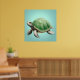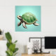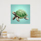 Lifelike digital artwork of a turtle with detailed shades of green, showcased on a blue background.
