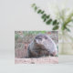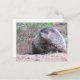 This high-quality postcard features a stunningly realistic photograph of a fluffy groundhog resting atop a fresh mound of earth outside its burrow. The detailed shot captures the rich textures of the animal's brown fur and its curious expression as it surveys its garden home. It is a wonderful choice for nature lovers or for sending a rustic, authentic greeting to friends and family during the Groundhog Day season. This candid wildlife moment brings the peaceful charm of a summer meadow directly to any recipient's mailbox.