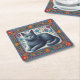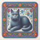 Realistic Russian blue Cat Colourful Floral Border Square Paper Coaster