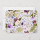A horizontal placement for the design is easy to use for jotting a quick handwritten message. The wildflower floral is centred with a solid white writing area, and covers the back of the card. A pale wisteria background for various blues, plummy purples and white flowers from the field and garden.