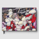Original whimsical painting of Holiday Dollys by well-season Fine Art Artist, Gaye Elise Beda. A gathering of anthropomorphic mice is dressed in festive, holiday-themed clothing. Their bright red outfits and striped socks create a joyful and playful scene, with each mouse uniquely adorned. The background suggests a wintry setting, enhancing the festive mood.