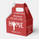 Stylish NEW HOME favour boxes designed as part of a realtor-to-client closing gift. ALL TEXT IS FULLY CUSTOMIZABLE so you can personalise the wording to suit your corporate branding. The text reads BLESSINGS ON YOUR NEW HOME with Joshua 24:15 Bible verse - As for me and my house, we will serve the Lord. The image shows a white typography against a vibrant RED background. The O of HOME is replaced with a key. On the side, you can add your name and company name, or personal message to your client. On the other side, you can replace the panel by uploading your logo (please remember to delete 'Add your logo' text afterwards!) You can change the background colour, by clicking on Customise Further and choosing from the colour palette. A wide range of matching gifts are available so you can create corporate gift sets for your clients. Christmas version is also available in other colours.