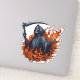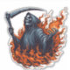 This striking design features the Grim Reaper engulfed in vibrant flames, creating a powerful and ominous image. The Reaper, with its iconic hooded cloak and skeletal face, stands amidst a blaze of intense fire, with flames swirling around and illuminating its ghostly figure. The fiery tendrils dance and flicker, casting an eerie glow and adding a dynamic, dramatic effect to the scene.