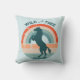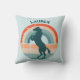 On this throw pillow, a blue silhouette rearing horse is placed on a retro style circle rainbow background of distressed fabric stripes. The custom text above the image is also distressed. Currently it says "Wild and Free, but you can easily change it to anything else you'd prefer. The back of the pillow has the same image with a text field that can hold your name.