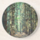 Photograph of a rebellious tree. It stands in the middle of 2 perfect rows of pines, out of line and totally unique.