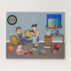 Get ready for hours of chaotic fun with this delightful jigsaw puzzle! The Rebel’s Haven Jigsaw Puzzle captures the hilarious scene of a rebellious kid surrounded by toys in a messy bedroom. Watch as the kid's parents scold him to clean up while his little sister adds to the chaos by playing with a toy fire truck on the floor. And don't forget the cat lazily napping in the window! This adorable cartoon illustration is perfect for framing and hanging on the wall, making it an ideal gift for any little kid. Get ready to embrace the mayhem and piece together this entertaining puzzle!