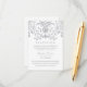 Share your celebration and website details with this elegant card featuring an ornate silver faux glitter damask header with intricate scrollwork. Spaced serif typography presents "Reception" prominently while italic script displays the venue name and event timing. The card also includes accommodations and website information for guest convenience. All text is fully editable to customise every detail.