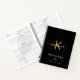 A cookbook notebook for a foodie and your favourite vegitarian recipes. Black background, white and golden text. Decorated with a small faux gold leaf. Personalise and add your monogram initial, name and text.