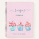 A blush pink background. Decorated with 3 cupcakes in pink and blue. Personaize and add your name and a title.