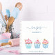 A white background. Decorated with 3 cupcakes in blush pink and blue. Personaize and add your name and a title.