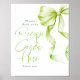 Add a fabulous and personal touch to your bridal shower with this elegant watercolor sage green bow “Please Drop Your Recipe Cards Here” sign. Featuring a bold hand-painted ribbon design, it blends romantic, feminine style with modern simplicity — the perfect accent for a “She’s Tying the Knot” themed celebration.