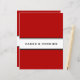 Custom double sided recipe divider page for a red cookbook recipe binder; one design of a matching set. Features a simple modern minimalist design in a red black and white colour palette with customisable text presented on a coordinating white banner with black accents