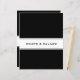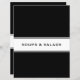Custom double sided recipe divider page for a black and white cookbook recipe binder; one design of a matching set. Features a simple modern minimalist design in a classic black and white colour palette with customisable text presented on a coordinating white banner with black accents