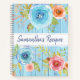 Recipe cookbook floral rustic watercolor blue wood notebook