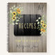 A charming rustic farmhouse recipe organiser cooking book with vintage wood and yellow gold sunflowers bouquets. ++++++++++ Personalise it with chef monogram, name and your text! +++++++++ It can be a modern personal blank recipe journal book for your kitchen, a grandma's family cookbook, or a beautiful custom keepsake gift for a bridal shower, wedding, or family anniversary.