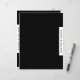 Custom double sided recipe divider page for a black and white cookbook recipe binder. Features a simple modern minimalist design in a classic black and white colour palette with customisable text presented on a coordinating tab.