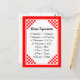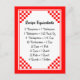This simple retro design of a red and white restaurant check pattern gives recipe measuring equivalents for help baking and cooking in the kitchen.
