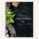 A cookbook notebook for a foodie and your favourite vegitarian recipes. On the cover: fresh food, herbs, basil onions, a wooden cutting board a herbal chopper on a painter's dark rustic canvas with paint stains. Personalise and add your name and text.