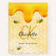Yellow, white background with a bee honeycomb pattern and happy smiling bumble bees. Decorated with sweet, golden honey dripping. Personalise and add your name, monogram initials, and a title golden and black letters. The name is written with a hand lettered style script. For your desserts, sweets, bakery recipes.