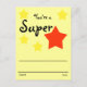This "Super Star" Recognition Award is ideal for K-5 grade school teachers. These can be used as mail-out postcards or in the classroom Recognition Awards! Buy in bulk and save!