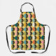 This apron has a mid-century modern design of solid semi-circles matched with black and white concentric semi-circles, all on a gold background. If you like the design but prefer different colours, message me.