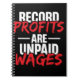Introducing our latest Notebook design, featuring the powerful statement "Record Profits are Unpaid Wages." This bold message is a reminder that behind every successful business are the hardworking individuals whose labour often goes unrecognised and undervalued.
