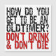 How do you get to be an old timer? Don't drink and don't die! An old 12 step recovery joke or slogan. Twelve step Oldtimers and my sponsor say this one all the time. Designed by Henry Nelson of Wichita Kansas
