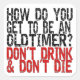 How do you get to be an old timer? Don't drink and don't die! An old 12 step recovery joke or slogan. Twelve step Oldtimers and my sponsor say this one all the time. Designed by Henry Nelson of Wichita Kansas