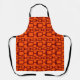 This apron has a mid-century modern design of maroon rounded rectangles connected together on a field of orange.