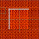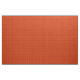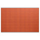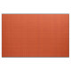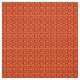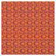 This fabric has a md-century modern design of maroon rounded rectangles connected together on a field of orange.