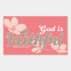 Share your faith with this rectangle sticker with a coral background and the words, "God is Faithful" surrounded by flowers.