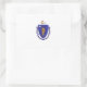 Designed to showcase Massachusetts' rich heritage and historical significance, this sticker prominently displays the iconic design of the Massachusetts flag. The flag features a white field with a blue shield in the centre, depicting an image of a Native American holding a bow and arrow, with a white star above the shield and a blue ribbon below it with the state motto "Ense Petit Placidam, Sub Libertate Quietem" ("By the Sword We Seek Peace, But Peace Only Under Liberty").