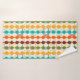 This towel set has a turquoise washcloth, a green hand towel, and a bath towel with a mid-century modern design of rounded rectangles with holes as a background with rounded chains in the foreground all in MCM colours. If you like the design but prefer different colours, message me.
