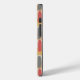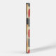 This phone case has a geometric design of rectangles in tan, grey, and off-white making the background with ovals in brick red overlaying them.