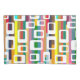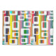 This pillowcase has a mid-century modern design of rectangles with holes on a field of stripes.