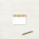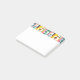 This Post-It notepad has a mid-century modern design of rectangles with holes on a field of stripes.