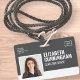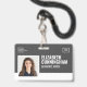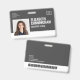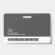 A modern and simple badge that does not distract from the important details. Easy to read from afar. Add a custom logo and company/hostpital/clinic details. Add the employee's name, photo, and professional title. The bar of colour can be modified to match the company's official colours. At the back, add more information such as return address and the employee's ID number. Perfect for rectangular shaped logos.