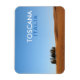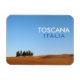 Rectangular magnet of a small group of cypress trees in a small forest between the rolling barren hills in autumn in the Val d'Orcia, Tuscany, Italy with the text: Toscana, Italia. A great souvenir!