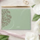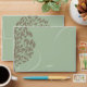 Printed on recycled paper, with other paper types available. Soft, natural and scenic outdoor nature design in colour shades of sage earthy green and soft earth brown. Stylised modern tree shape with flowing white swirls in the background. Some products available on recycled and earth friendly papers.