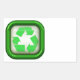 Popular green recycle arrows circle symbol in a glossy 3d look framed button. Shown is the rectangle shape sticker, or great for seals, with white copy space for any custom text. Good for home or company use, Earth Day, and everyday!
