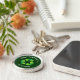 Recycling symbol with woodcut shade. Two custom text fields on circle.