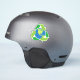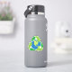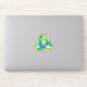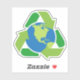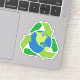 Sticker featuring a green recycling symbol around planet earth