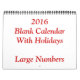 In 2016 Blank Calendar With Holidays with large numbers and red wire you can find red customisable text on front page and holidays and events in U.S. and Canada.