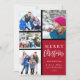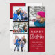 Red 4 Photo Collage Modern Merry Christmas Holiday Card