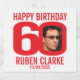 60th birthday bright red and white photo party paper beer or wine labels. Great to add a personal touch to a surprise thirtieth birthday party. Customise with your birthday boys or girls photo in the 0 of 60 and personalise with your choice of name and birthday celebration date. Designed by Sarah Trett for www.mylittleeden.com