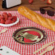 Red Abstract 00th Birthday Gold High Heels Paper Plate