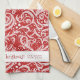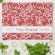 Add a touch of elegance to your holiday season with this enchanting abstract Christmas pattern. Featuring delicate swirls and snowflakes in pristine white against a bright red background, this design captures the magic of a winter wonderland. The combination of bold colours and intricate patterns makes it a perfect choice adding a pop of colour to your holiday. A template has been provided on this kitchen tea towel design to add your name and/or favourite holiday greeting. Search ID1009 to see other products and patterns in this colour scheme.