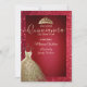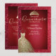 Red adorable Gold sequins dress tiara Quinceañera Invitation