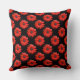 Red African Daisy Pattern on Black Cushion