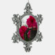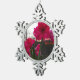 Red Amaryllis and Winter Sunrise Snowflake Pewter Christmas Ornament